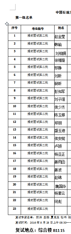 面试分组安排(按报名先后顺序): 注:在老系统中报名的同学,如以下名单有遗漏,可能为系统bug,请致电13521180188,联系梁老师。